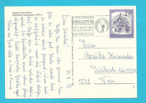 AK Bad Hofgastein. Kaiser-Franz-Platz. Gelaufen. Großformat. Verlag: Wolkersdorfer. Nummeriert: C 49. Zustand: Fingerknick links der Bildmitte.