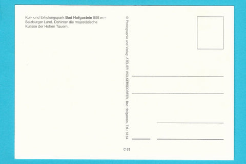 AK Bad Hofgastein. Kur- und Erholungspark. Ungelaufen. Großformat. Verlag: Wolkersdorfer. Nummeriert: C 63. Zustand: gut.