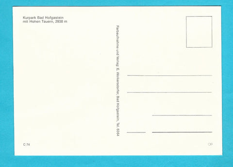 AK Bad Hofgastein. Kurpark. Ungelaufen. Großformat. Verlag: Wolkersdorfer. Nummeriert: C 74. Zustand: rechtes unteres Eck geknickt.