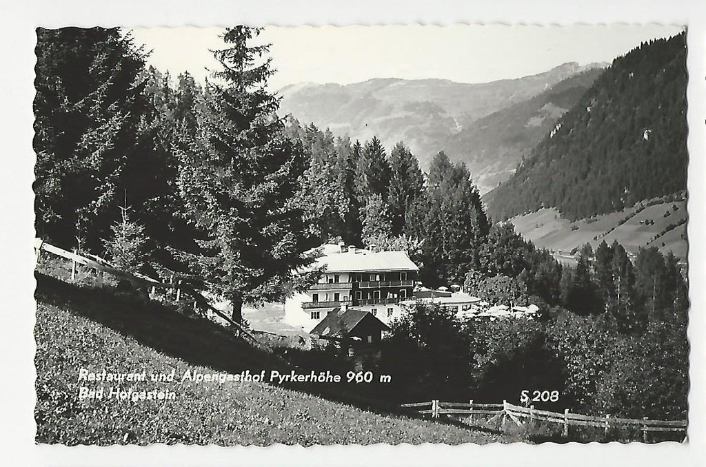 AK Bad Hofgastein. Restaurant und Alpengasthof Pyrkerhöhe. Gelaufen. Kleinformat. Verlag: Wolkersdorfer. Nummeriert: S 208. Zustand: Knick über dem rechten unteren Eck, sonst O.k.