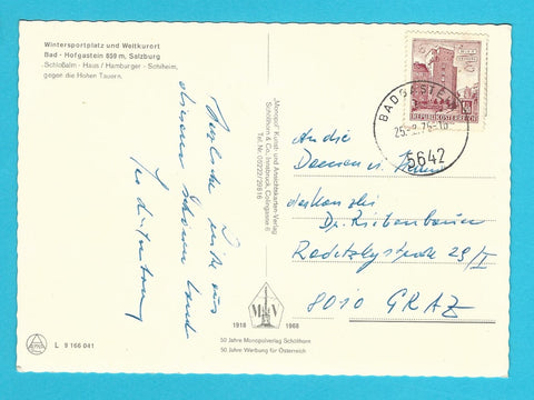 AK Bad Hofgastein. Schloßalm-Haus Hamburger Schiheim. Gelaufen. Großformat. Verlag: Monopol. Nummeriert: L 9166041. Zustand: obere Ecken geknickt, etwas berieben.