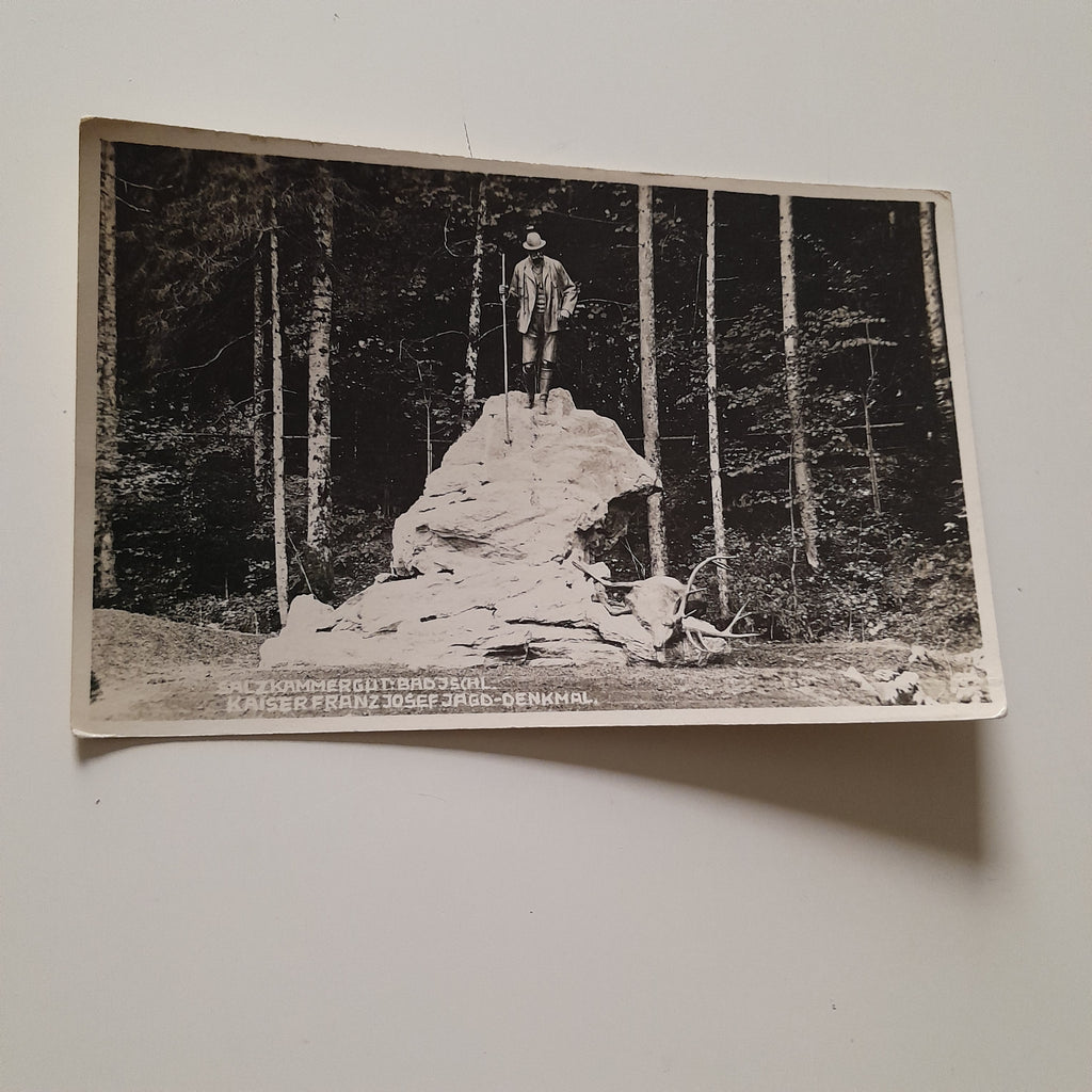 AK Bad Ischl. Kaiser Franz Josef Jagd-Denkmal. Gelaufen, aber Briefmarke wurde entfernt. Kleinformat. Verlag: Brandt. Nummeriert: 5103. Zustand: gut.