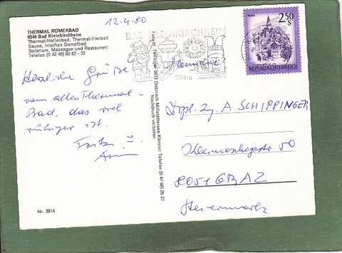 AK Bad Kleinkirchheim. Thermal Römerbad. Gelaufen 1980. Großformat. Verlag: Tollinger. Nummeriert: 2814. Zustand: gut, leichte Läsuren.