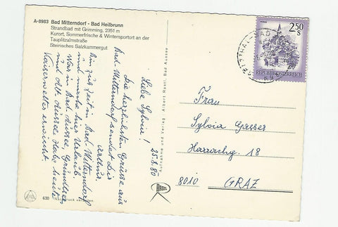 AK Bad Mitterndorf - Bad Heilbrunn. Strandbad mit Grimming. Gelaufen. Großformat. Verlag: Rastl. Nummeriert: 630. Zustand: gut.