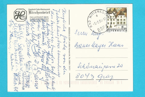 AK Bad Mitterndorf. Gasthof Cafe Restaurant Kirchenwirt. Hans und Elisabeth Hösele. Gelaufen. Großformat. Verlag: Design & Copy. Zustand: gut, rechtes unteres Eck geknickt.