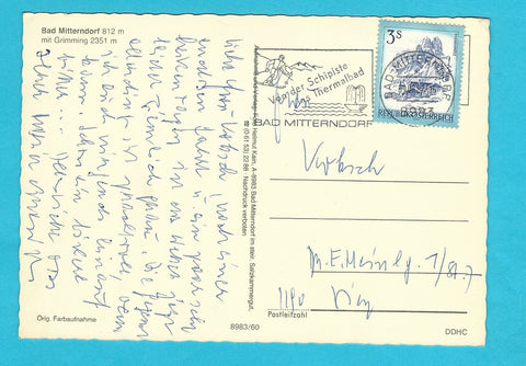 AK Bad Mitterndorf mit Grimming. Gelaufen. Großformat. Verlag: Kain. Nummeriert: 8983/60. Zustand: gut, leicht bestoßen.