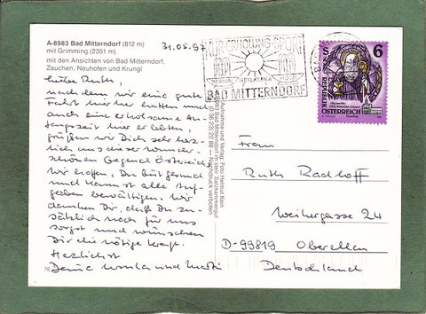 AK Bad Mitterndorf mit Grimming. Gelaufen 1997. Großformat. Verlag: Kain. Nummeriert: 76. Zustand: gut.