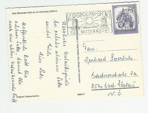 AK Bad Mitterndorf mit Grimming. Gelaufen. Großformat. Verlag: Kain. Nummeriert: 8983/4. Zustand: gut, leichte Kratzer.