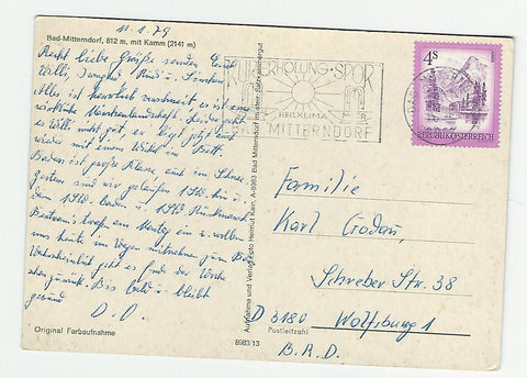 AK Bad-Mitterndorf, mit Kamm. Gelaufen. Großformat. Verlag: Kain. Nummeriert: 8983/13. Zustand: Ecken geknickt bzw. bestoßen.