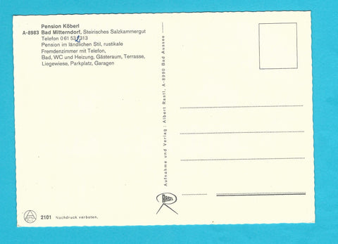 AK Bad Mitterndorf. Pension Köberl. Ungelaufen. Großformat. Verlag: Rastl. Nummeriert: 2101. Zustand: gut.