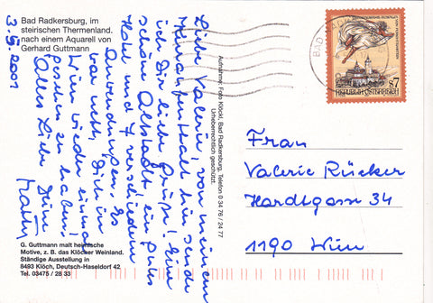 AK Bad Radkersburg im steirischen Thermenland. nach einem Aquarell von Gerhard Guttmann. Gelaufen. Großformat. Verlag: Klöckl. Zustand: gut, rechtes oberes Eck angeknickt.