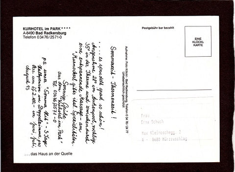 AK Bad Radkersburg. Kurhotel im Park. Werbekarte. Gelaufen. Großformat. Verlag: Klöckl. Zustand: gut.