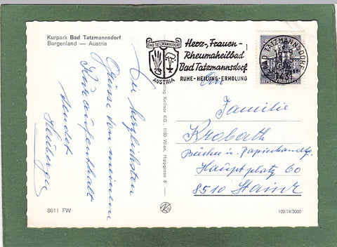 AK Bad Tatzmannsdorf. Gelaufen 1975. Großformat. Verlag: Kellner. Nummeriert: 8011. Zustand: linkes oberes Eck mehrfach geknickt, andere Ecken angeknickt.