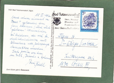 AK Bad Tatzmannsdorf. - Freizeitzentrum. Gelaufen 1982. Großformat. Verlag: RAUCOLOR. Nummeriert: P 270. Zustand: gut, rechtes unteres Eck wenig angeknickt.