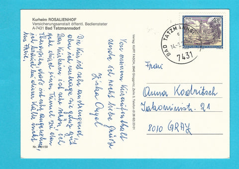 AK Bad Tatzmannsdorf. Kurheim Rosalienhof. Gelaufen. Großformat. Verlag: Fasch. Nummeriert: 7431/59. Zustand: Kugelschreiberpfeil links oberhalb der Bildmitte, sonst O.k.