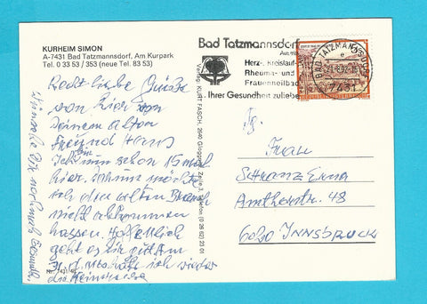 AK Bad Tatzmannsdorf. Kurheim Simon. Gelaufen. Großformat. Verlag: Fasch. Nummeriert: 7431/48. Zustand: gut.