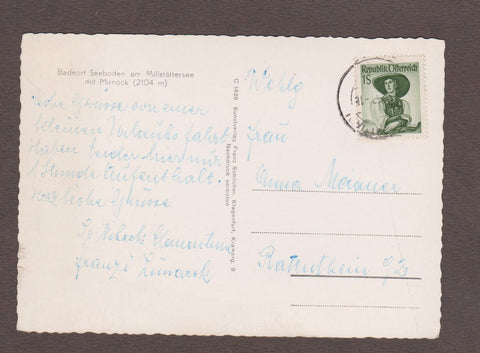 AK Badeort Seeboden am Millstättersee mit Mirnock. Gelaufen. Großformat. Verlag: Schilcher. Zustand: Oberfläche knittrig.