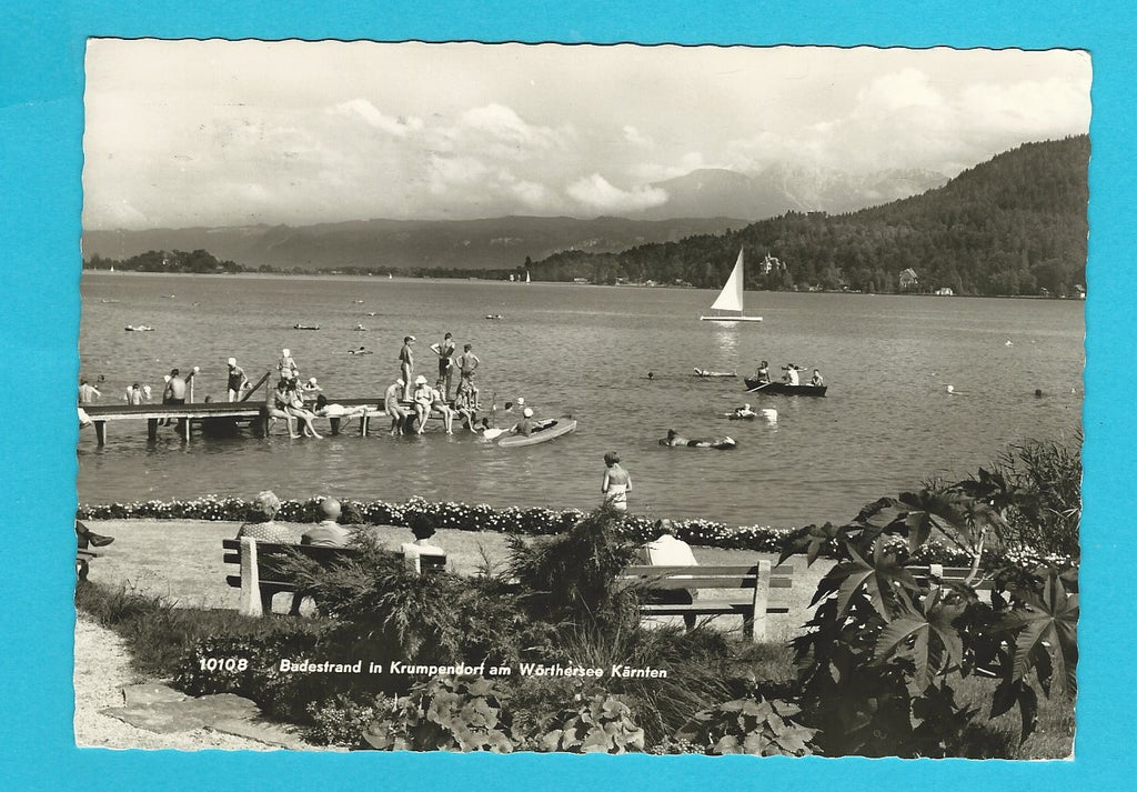AK Badestrand in Krumpendorf am Wörthersee. Gelaufen. Großformat. Verlag: Rhomberg. Nummeriert: 10108. Zustand: gut.