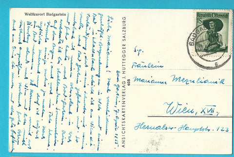 AK Badgastein. Gelaufen. Kleinformat. Verlag: Huttegger. Nummeriert: 625. Zustand: untere Ecken geknickt, Oberfläche leicht knittrig.