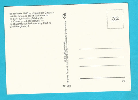 AK Badgastein. Ungelaufen. Großformat. Verlag: Cosy. Nummeriert: 763. Zustand: obere Ecken angeknickt, Knick am linken Rand in der oberen Hälfte.