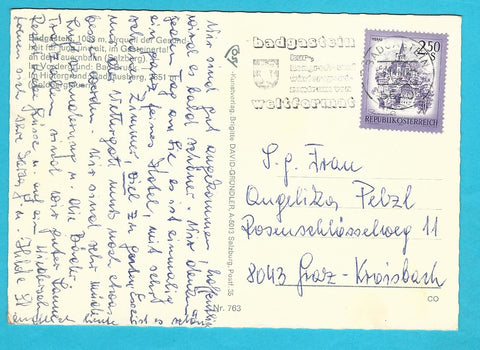 AK Badgastein. Gelaufen. Großformat. Verlag: Cosy. Nummeriert: 763. Zustand: leichte Randläsuren.