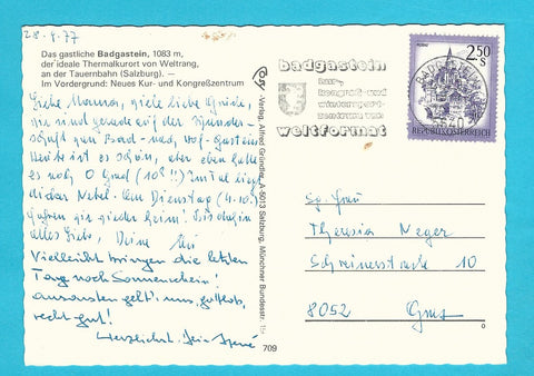 AK Badgastein. Gelaufen. Großformat. Verlag: Cosy. Nummeriert: 709. Zustand: Knicke.