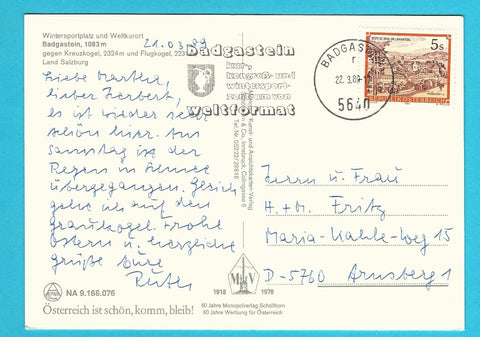 AK Badgastein. Gelaufen. Großformat. Verlag: Monopol. Nummeriert: NA 9166076