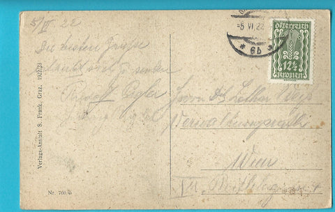 AK Badgastein. (1922-23) Gelaufen. Kleinformat. Verlag: Frank. Nummeriert: 760/6. Zustand: linkes oberes Eck geknickt, andere Ecken leicht angestoßen.