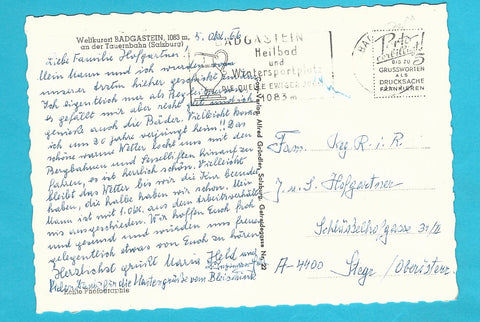 AK Badgastein. Gelaufen, aber Briefmarke wurde angeknickt. Großformat. Verlag: Cosy. Nummeriert: 708a. Zustand: linke Ecken angeknickt.