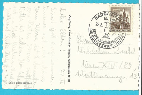 AK Badgastein. Gelaufen. Kleinformat. Verlag: Cosy. Nummeriert: 713. Zustand: leicht bestoßen.