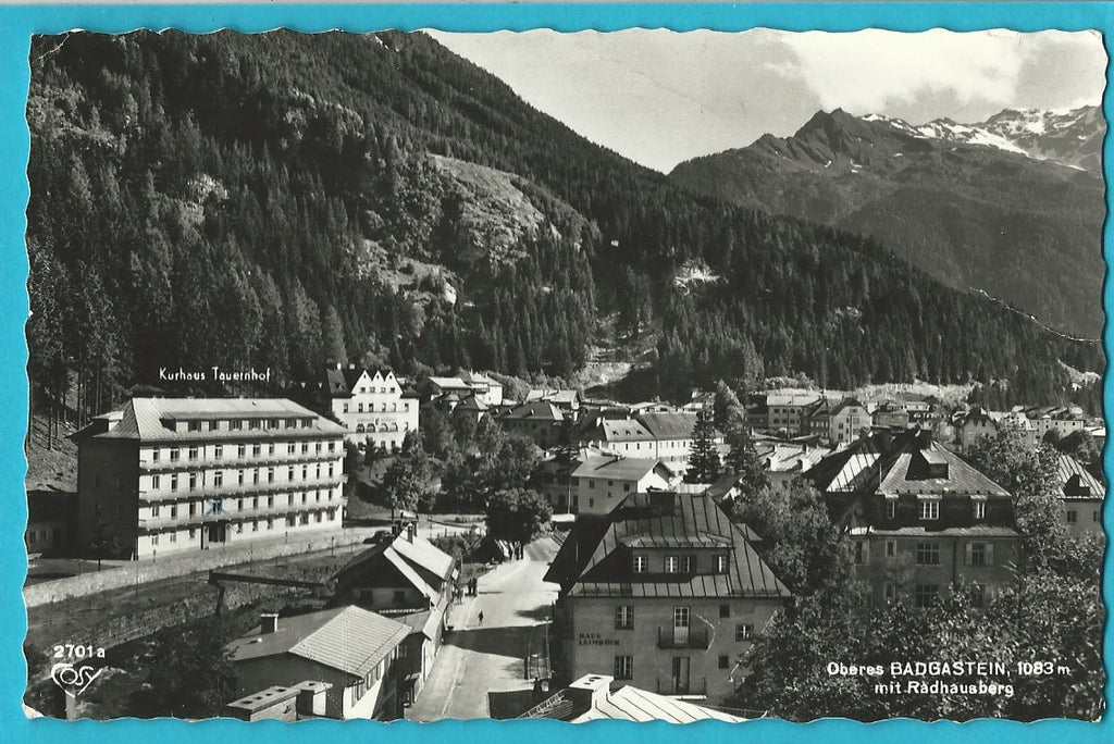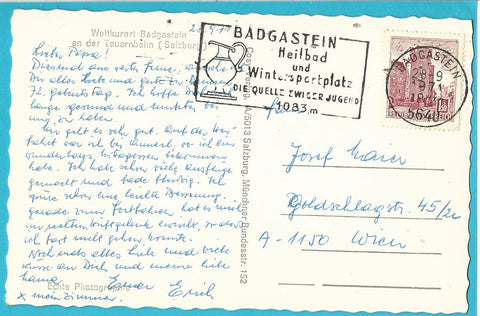 AK Badgastein. Gelaufen. Kleinformat. Verlag: Cosy. Nummeriert: 2701a. Zustand:Knick über der rechten oberen Hälfte, linkes oberes Eck angeknickt.