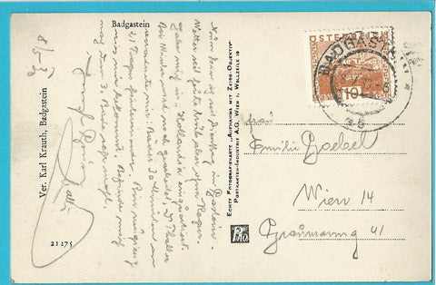 AK Badgastein. Gelaufen. Kleinformat. Verlag: PAG. Nummeriert: 21275. Zustand: gut, leicht fleckig.