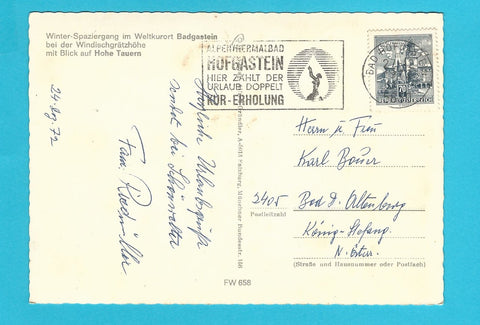 AK Badgastein bei der Windischgrätzhöhe. Gelaufen. Großformat. Verlag: Cosy. Nummeriert: FW 658. Zustand: gut, Ecken wenig angestoßen.