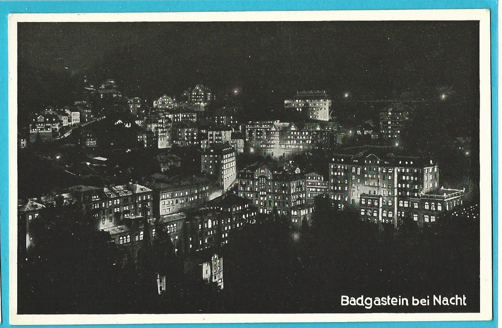 AK Badgastein bei Nacht. Gelaufen. Kleinformat. Verlag: Huttegger. Nummeriert: 848. Zustand: knittrig.