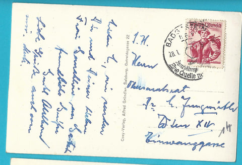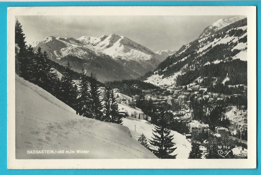 AK Badgastein im Winter. Gelaufen. Kleinformat. Verlag: Cosy. Nummeriert: W 710. Zustand: gut, linkes oberes Eck geknickt.