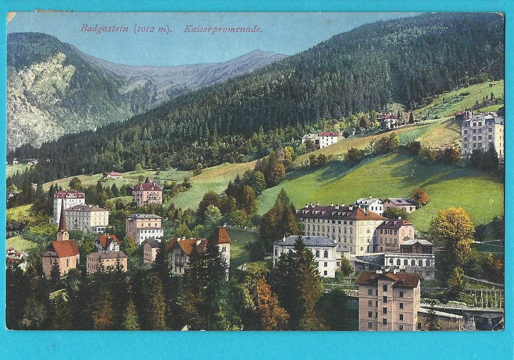 AK Badgastein. Kaiserpromenade. Gelaufen. Kleinformat. Verlag: Purger & Co. Nummeriert: 9649. Zustand: gut, rechtes oberes Eck angeknickt, Einriss am unteren Rand etwas links der Mitte.