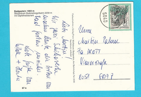 AK Badgastein. Skizentrum Stubnerkogelbahn mit Gipfelrestaurant. Gelaufen. Großformat. Verlag: Wolfsbauer. Nummeriert: 87a. Zustand: untere Ecken geknickt.