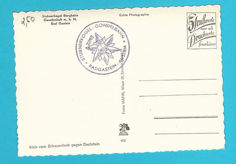 AK Badgastein. Stubnerkogel Bergbahn. Blick vom Zittrauertisch gegen Dachstein. Ungelaufen. Großformat. Verlag: Hahn. Nummeriert: 458. Zustand: gut.