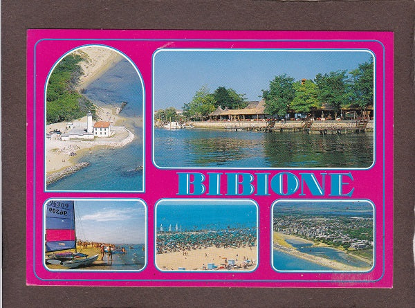 AK Bibione. Gelaufen 2002. Großformat. Verlag: New Graphic Ganzaroli. Nummeriert: L542. Zustand: etwas fleckig und berieben.