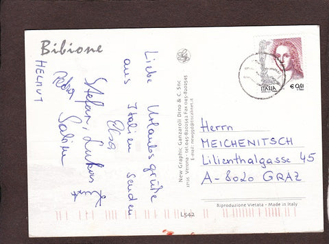 AK Bibione. Gelaufen. Großformat. Verlag: New Graphic Ganzaroli. Nummeriert: L542. Zustand: linke Ecken geknickt.