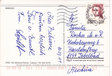 AK Bibione. Gelaufen. Großformat. Verlag: Mattiussi. Nummeriert: 22920. Zustand: gut, leichte Läsuren.