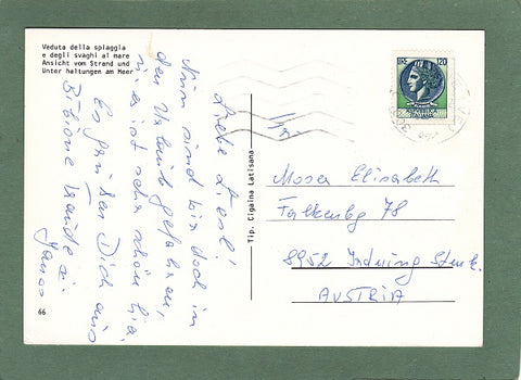 AK Bibione. Gelaufen. Großformat. Verlag: Cigaina Latisana. Nummeriert: 66. Zustand: rechtes unteres Eck geknickt, andere Ecken und am Rand leicht angestoßen.