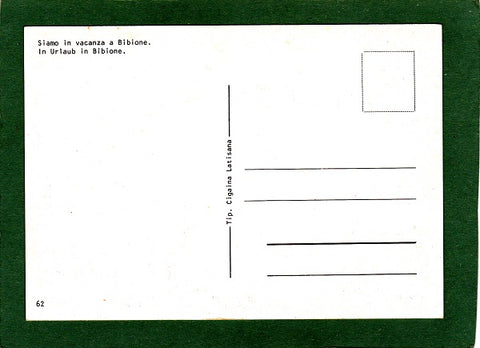 AK Bibione. Ungelaufen. Großformat. Verlag: Cigaina Latisana. Nummeriert: 62. Zustand: leichte Randläsuren, Daumenknick in linker unterer Hälfte.