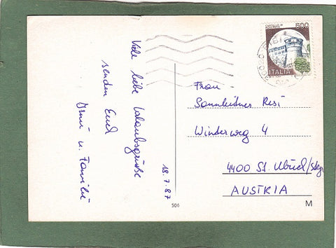AK Bibione. Gelaufen 1987 in Bibione. Großformat. Nummeriert: 506. Zustand: Einriss am oberen Rand , rechtes oberes Eck mehrfach geknickt.