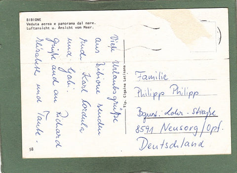 AK Bibione. Gelaufen, aber Briefmarke wurde entfernt. Großformat. Verlag: Cigaina. Nummeriert: 58. Zustand: Ecken angeknickt, sonst leichte Läsuren.
