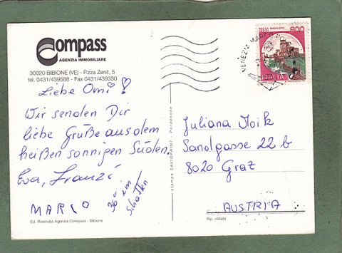 AK Bibione. Compass Agenzia Immobiliare. Airone. Caravelle. San Marco. Gelaufen. Großformat. Zustand: gut.
