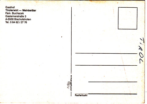 AK Bischofshofen. Gasthof Tirolerwirt - Weinbeißer. Fam. Buchacek. Gasteinerstraße 3.