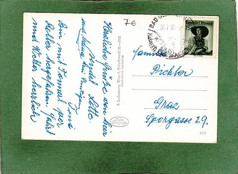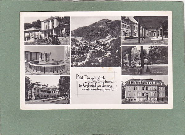 AK Bist du gänzlich quf dem Hund – in Gleichenberg wirst wieder g'sund!. Gelaufen 1956 in Bad Gleichenberg. Kleinformat. Verlag: Ledermann. 1956. Nummeriert: 5195. Zustand: fleckig, leichte Läsuren an Ecken.