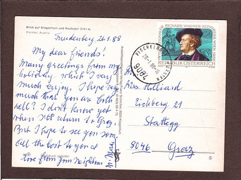 AK Blick auf Klagenfurt und Hochobir. Gelaufen 1988. Großformat. Verlag: Schilcher. Nummeriert: W 17. Zustand: gut.