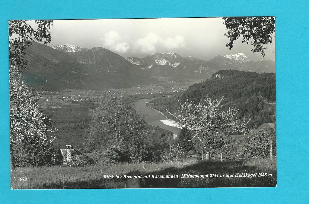 AK Blick ins Rosental. Gelaufen, aber Briefmarke wurde entfernt. Kleinformat. Verlag: Schilcher. Nummeriert: 972. Zustand: stärker bestoßen.